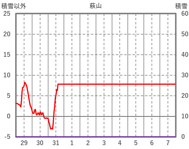 | 日 | 時 | 気温 | 降水 | 風向/風速 | 日照 | 積雪 | 降雪 |