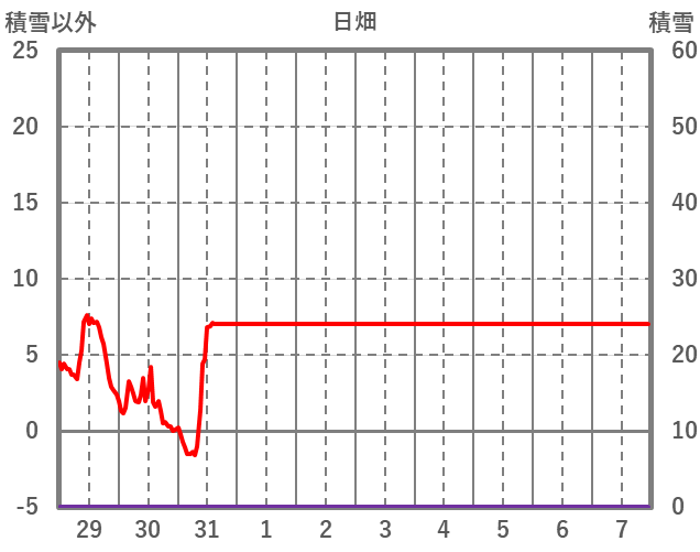 | 日 | 時 | 気温 | 降水 | 風向/風速 | 日照 | 積雪 | 降雪 |