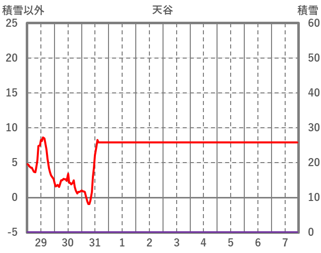 | 日 | 時 | 気温 | 降水 | 風向/風速 | 日照 | 積雪 | 降雪 |