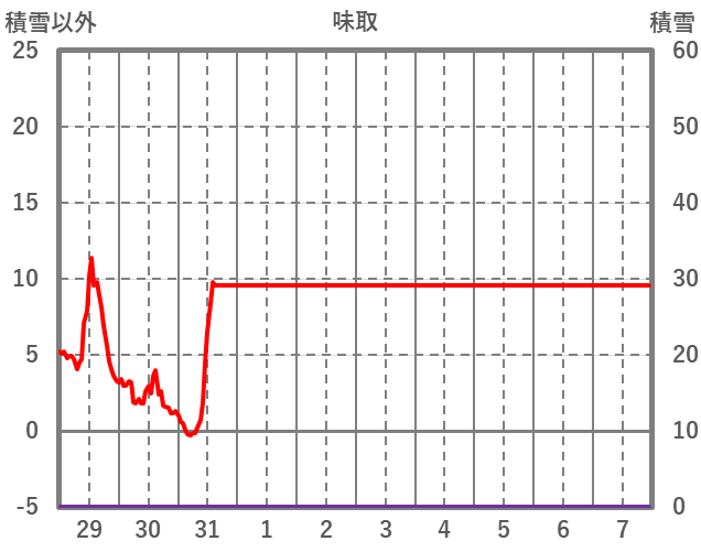 | 日 | 時 | 気温 | 降水 | 風向/風速 | 日照 | 積雪 | 降雪 |