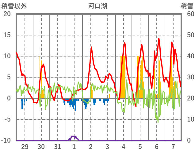 | 日 | 時 | 気温 | 降水 | 風向/風速 | 日照 | 積雪 | 降雪 |