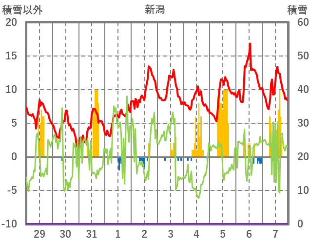 | 日 | 時 | 気温 | 降水 | 風向/風速 | 日照 | 積雪 | 降雪 |