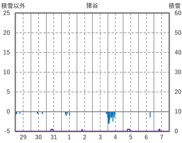 | 日 | 時 | 気温 | 降水 | 風向/風速 | 日照 | 積雪 | 降雪 |