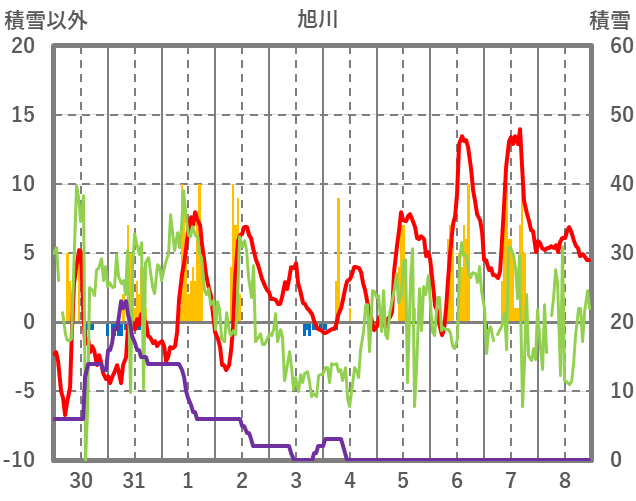 | 日 | 時 | 気温 | 降水 | 風向/風速 | 日照 | 積雪 | 降雪 |