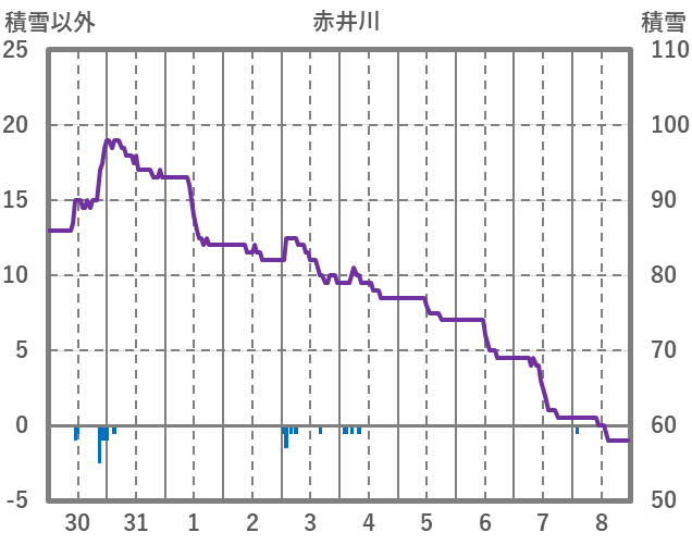 | 日 | 時 | 気温 | 降水 | 風向/風速 | 日照 | 積雪 | 降雪 |