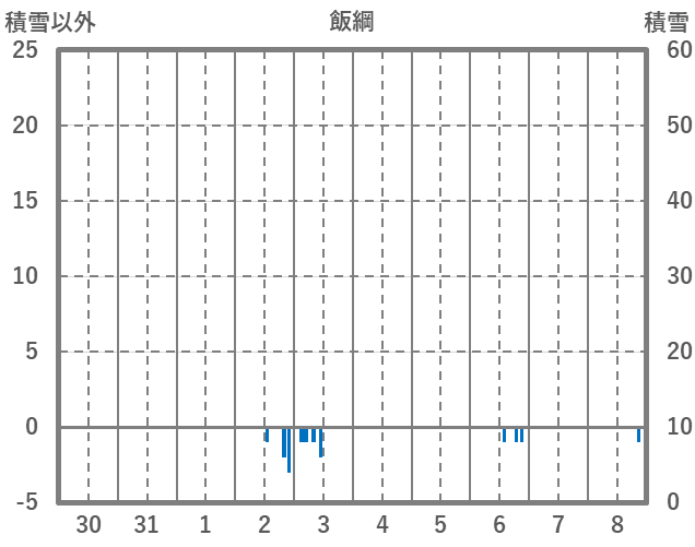 | 日 | 時 | 気温 | 降水 | 風向/風速 | 日照 | 積雪 | 降雪 |