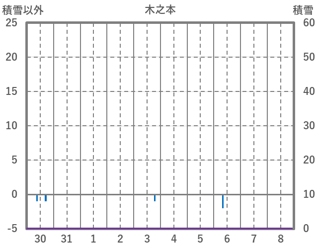 | 日 | 時 | 気温 | 降水 | 風向/風速 | 日照 | 積雪 | 降雪 |