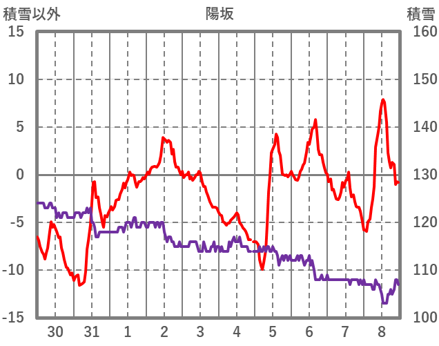 | 日 | 時 | 気温 | 降水 | 風向/風速 | 日照 | 積雪 | 降雪 |