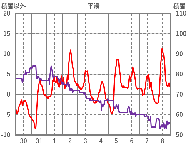 | 日 | 時 | 気温 | 降水 | 風向/風速 | 日照 | 積雪 | 降雪 |