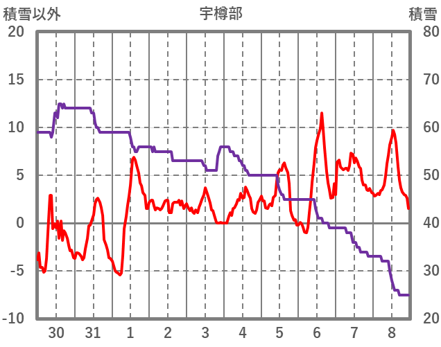 | 日 | 時 | 気温 | 降水 | 風向/風速 | 日照 | 積雪 | 降雪 |