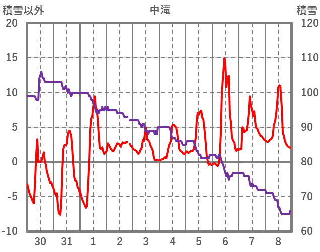 | 日 | 時 | 気温 | 降水 | 風向/風速 | 日照 | 積雪 | 降雪 |