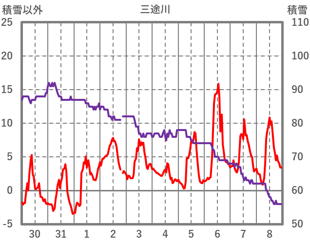 | 日 | 時 | 気温 | 降水 | 風向/風速 | 日照 | 積雪 | 降雪 |