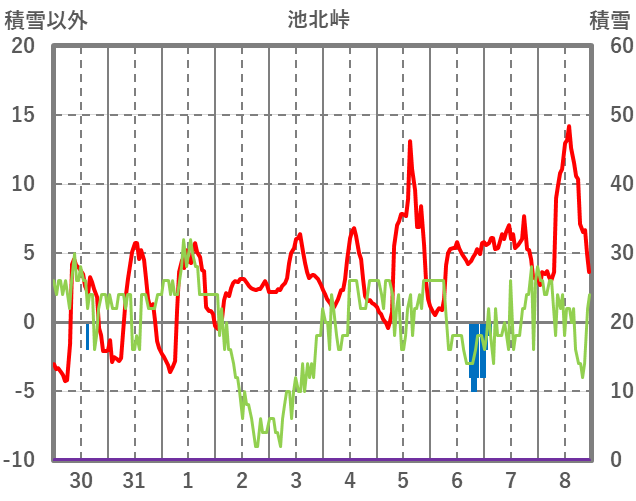 | 日 | 時 | 気温 | 降水 | 風向/風速 | 日照 | 積雪 | 降雪 |
