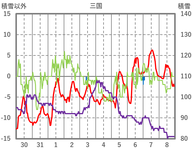 | 日 | 時 | 気温 | 降水 | 風向/風速 | 日照 | 積雪 | 降雪 |