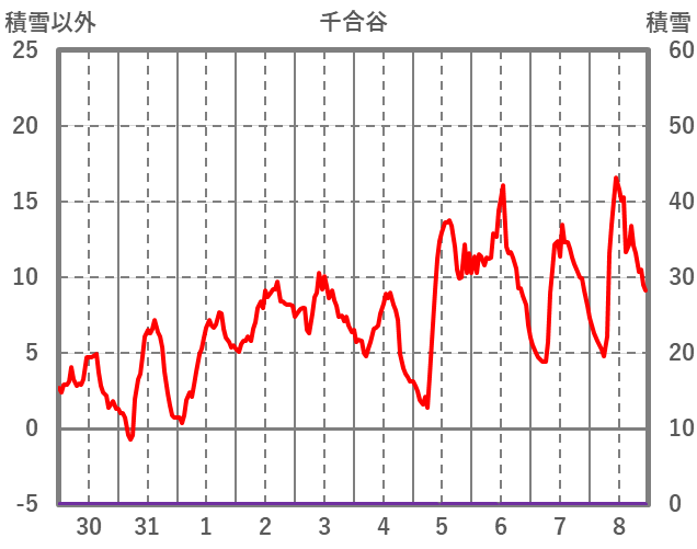 | 日 | 時 | 気温 | 降水 | 風向/風速 | 日照 | 積雪 | 降雪 |