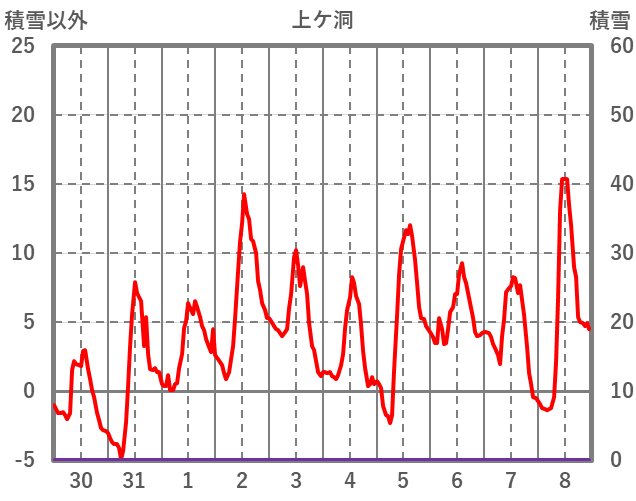 | 日 | 時 | 気温 | 降水 | 風向/風速 | 日照 | 積雪 | 降雪 |