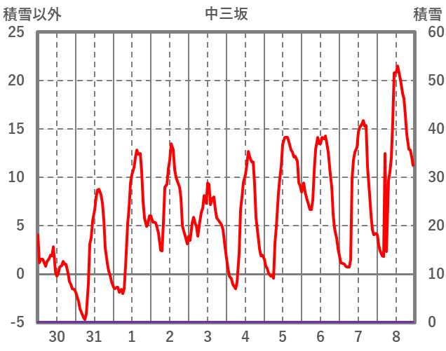 | 日 | 時 | 気温 | 降水 | 風向/風速 | 日照 | 積雪 | 降雪 |
