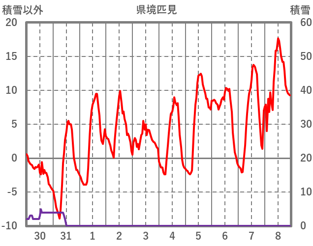 | 日 | 時 | 気温 | 降水 | 風向/風速 | 日照 | 積雪 | 降雪 |