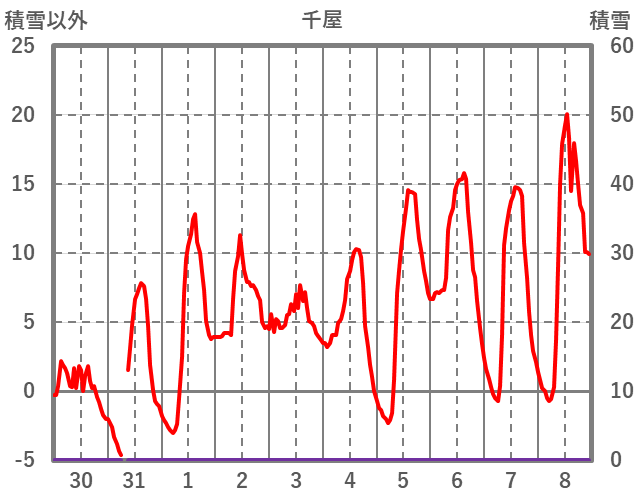 | 日 | 時 | 気温 | 降水 | 風向/風速 | 日照 | 積雪 | 降雪 |