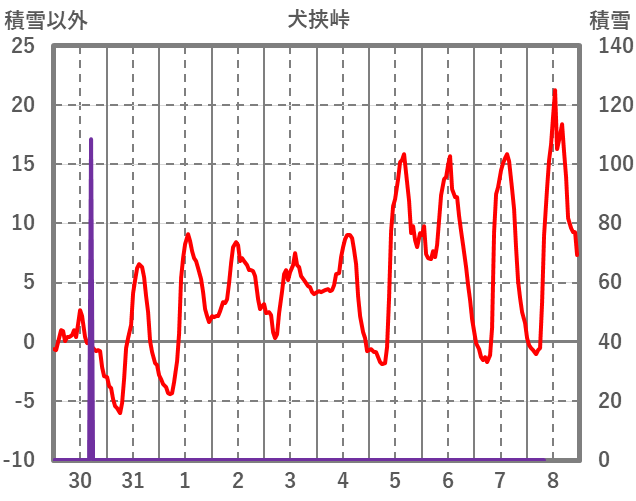 | 日 | 時 | 気温 | 降水 | 風向/風速 | 日照 | 積雪 | 降雪 |