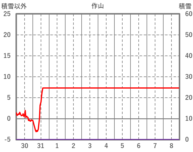| 日 | 時 | 気温 | 降水 | 風向/風速 | 日照 | 積雪 | 降雪 |