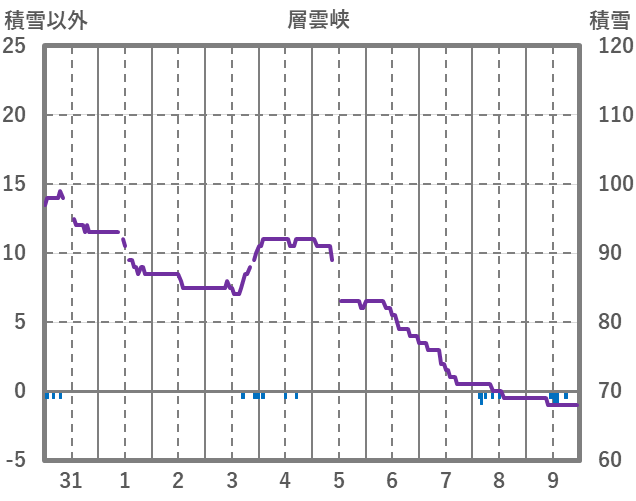| 日 | 時 | 気温 | 降水 | 風向/風速 | 日照 | 積雪 | 降雪 |