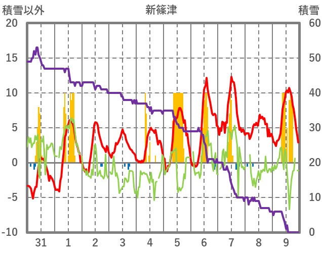 | 日 | 時 | 気温 | 降水 | 風向/風速 | 日照 | 積雪 | 降雪 |
