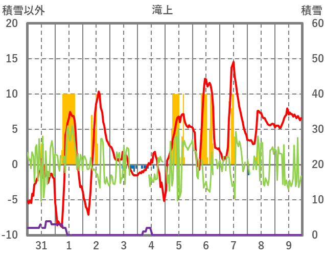 | 日 | 時 | 気温 | 降水 | 風向/風速 | 日照 | 積雪 | 降雪 |