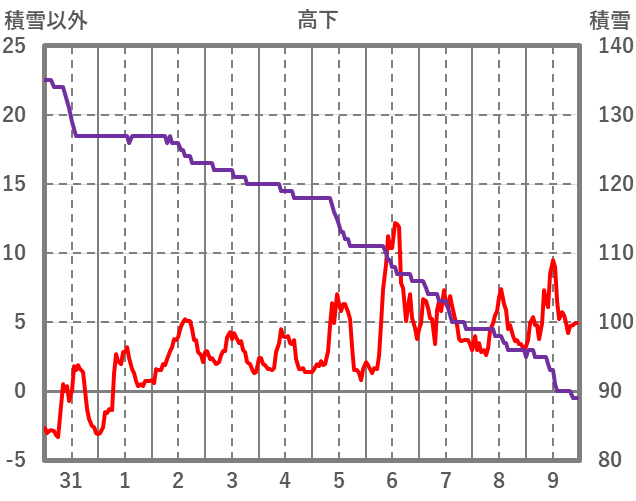 | 日 | 時 | 気温 | 降水 | 風向/風速 | 日照 | 積雪 | 降雪 |