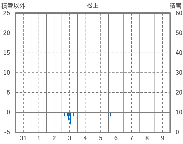 | 日 | 時 | 気温 | 降水 | 風向/風速 | 日照 | 積雪 | 降雪 |