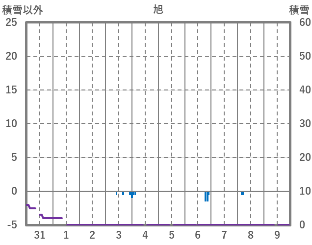 | 日 | 時 | 気温 | 降水 | 風向/風速 | 日照 | 積雪 | 降雪 |