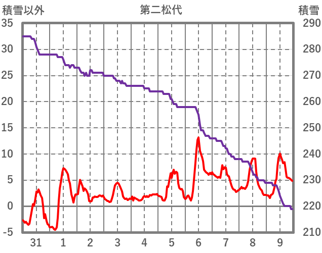 | 日 | 時 | 気温 | 降水 | 風向/風速 | 日照 | 積雪 | 降雪 |