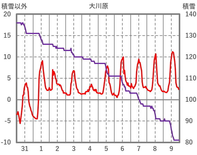 | 日 | 時 | 気温 | 降水 | 風向/風速 | 日照 | 積雪 | 降雪 |