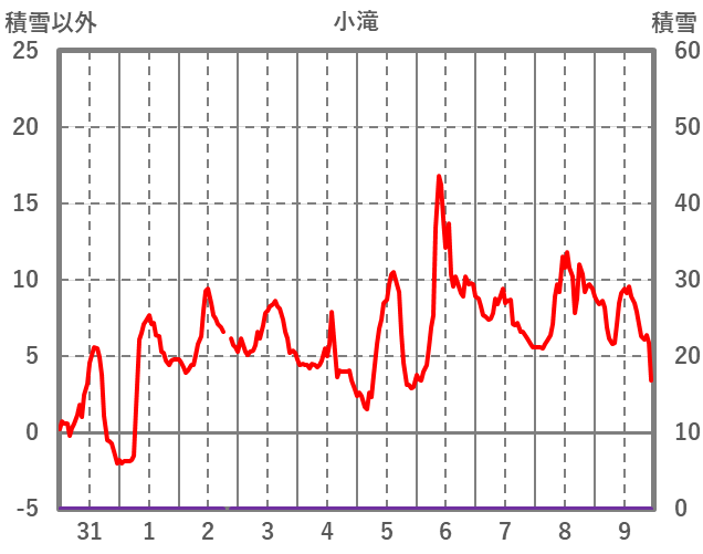 | 日 | 時 | 気温 | 降水 | 風向/風速 | 日照 | 積雪 | 降雪 |