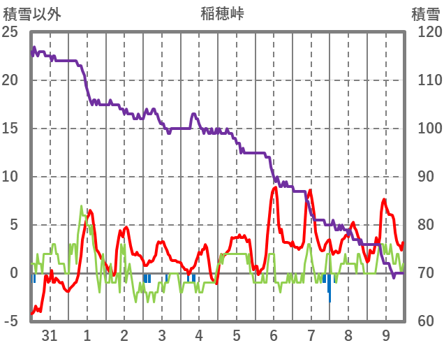 | 日 | 時 | 気温 | 降水 | 風向/風速 | 日照 | 積雪 | 降雪 |