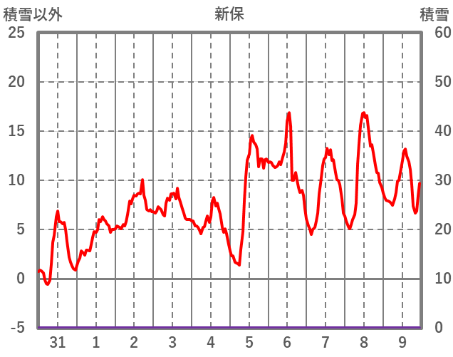 | 日 | 時 | 気温 | 降水 | 風向/風速 | 日照 | 積雪 | 降雪 |