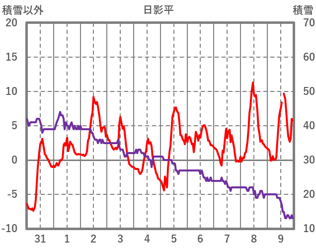 | 日 | 時 | 気温 | 降水 | 風向/風速 | 日照 | 積雪 | 降雪 |