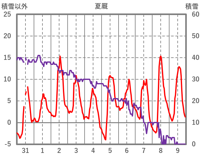 | 日 | 時 | 気温 | 降水 | 風向/風速 | 日照 | 積雪 | 降雪 |