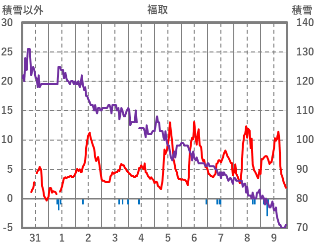 | 日 | 時 | 気温 | 降水 | 風向/風速 | 日照 | 積雪 | 降雪 |