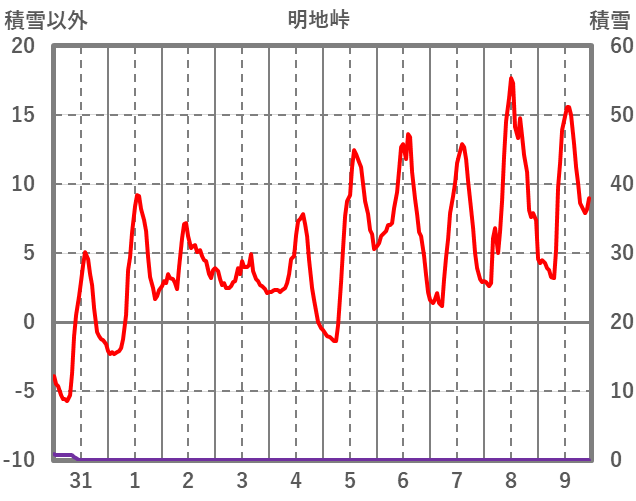 | 日 | 時 | 気温 | 降水 | 風向/風速 | 日照 | 積雪 | 降雪 |