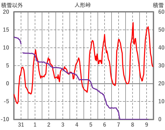 | 日 | 時 | 気温 | 降水 | 風向/風速 | 日照 | 積雪 | 降雪 |