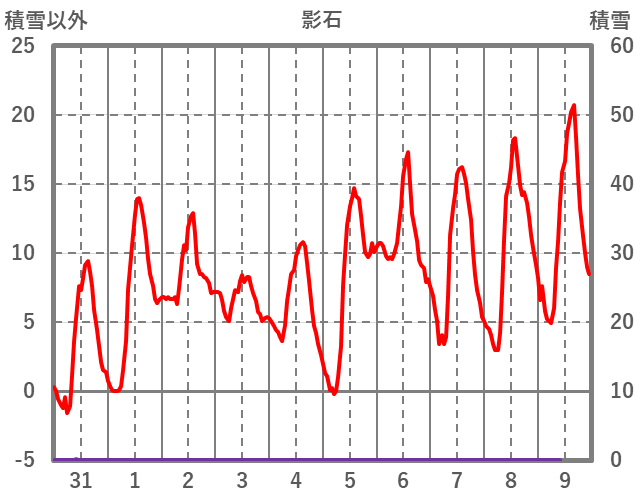 | 日 | 時 | 気温 | 降水 | 風向/風速 | 日照 | 積雪 | 降雪 |