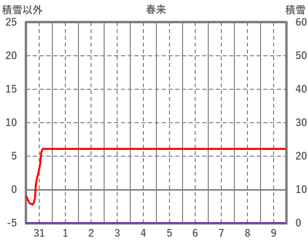 | 日 | 時 | 気温 | 降水 | 風向/風速 | 日照 | 積雪 | 降雪 |