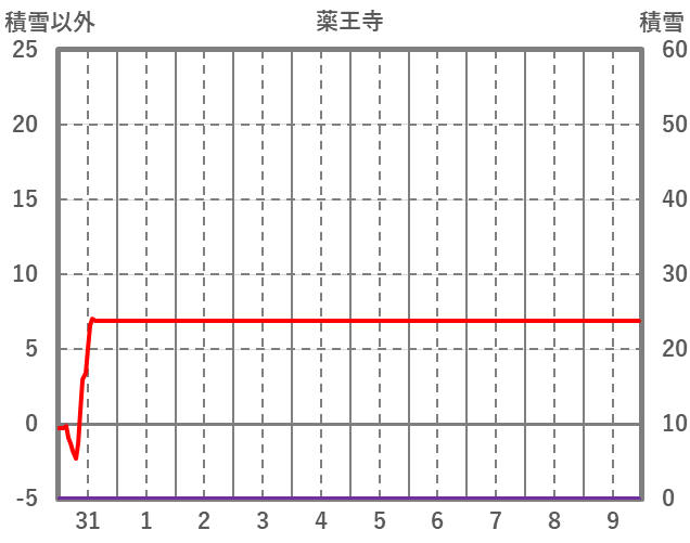 | 日 | 時 | 気温 | 降水 | 風向/風速 | 日照 | 積雪 | 降雪 |