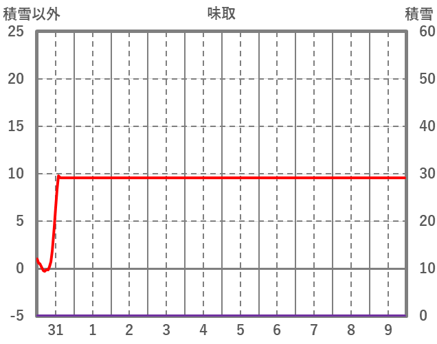 | 日 | 時 | 気温 | 降水 | 風向/風速 | 日照 | 積雪 | 降雪 |