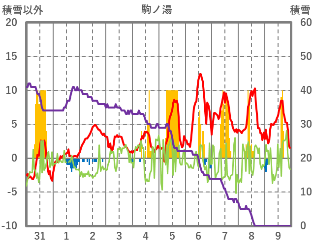 | 日 | 時 | 気温 | 降水 | 風向/風速 | 日照 | 積雪 | 降雪 |