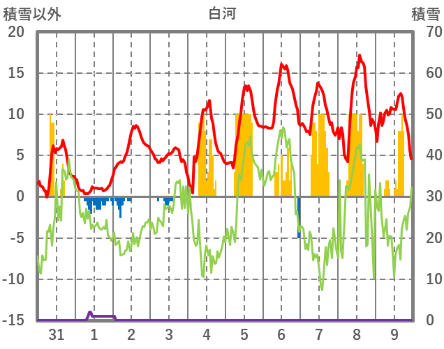 | 日 | 時 | 気温 | 降水 | 風向/風速 | 日照 | 積雪 | 降雪 |