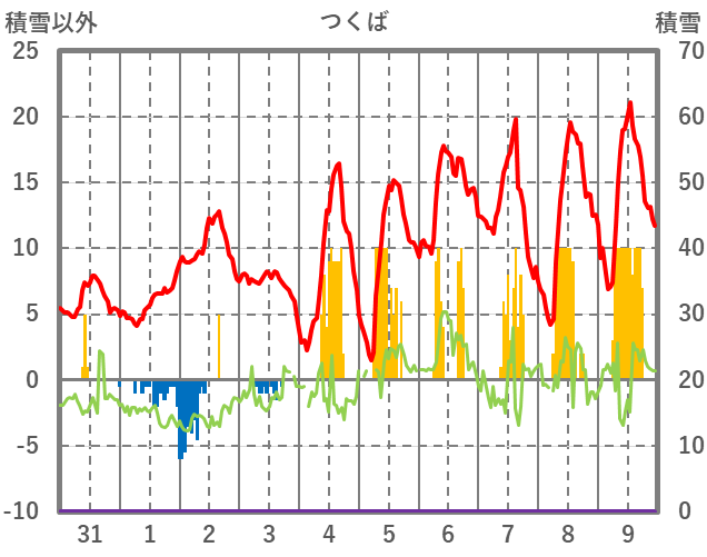 | 日 | 時 | 気温 | 降水 | 風向/風速 | 日照 | 積雪 | 降雪 |