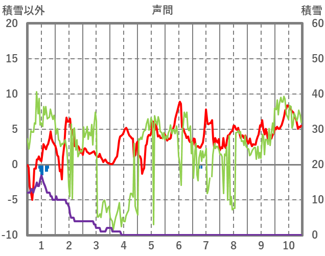 | 日 | 時 | 気温 | 降水 | 風向/風速 | 日照 | 積雪 | 降雪 |