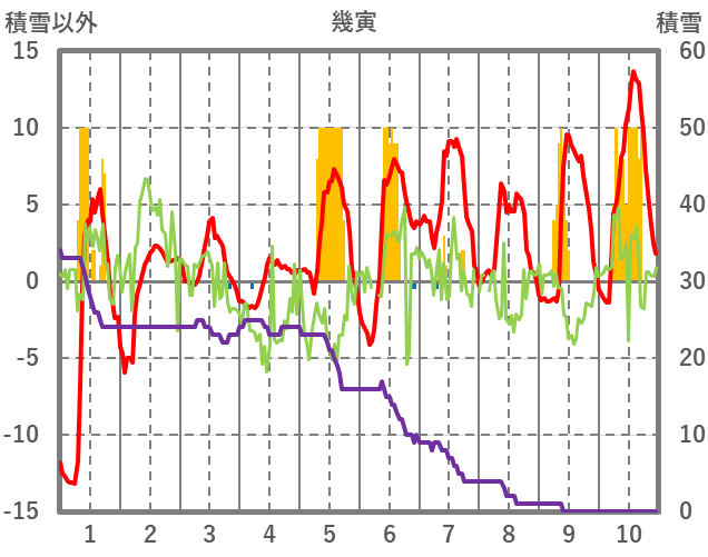 | 日 | 時 | 気温 | 降水 | 風向/風速 | 日照 | 積雪 | 降雪 |